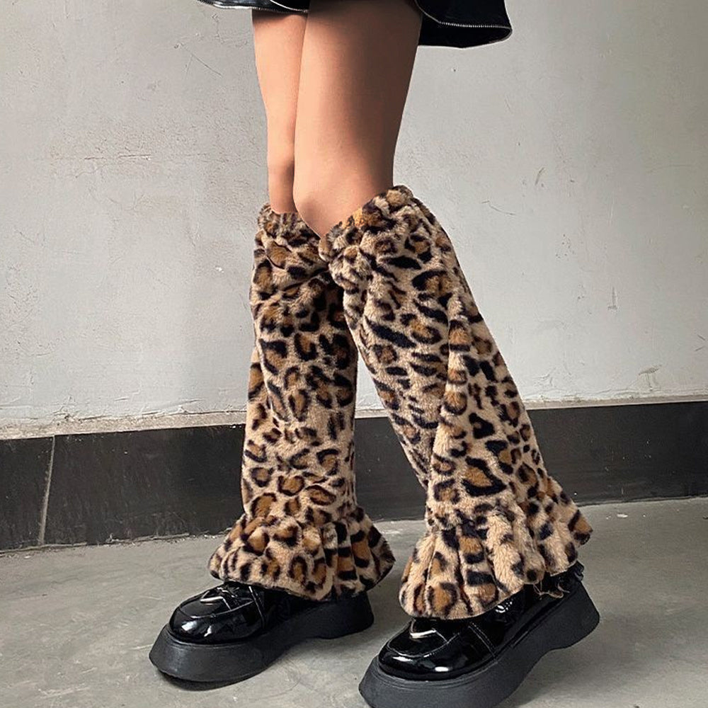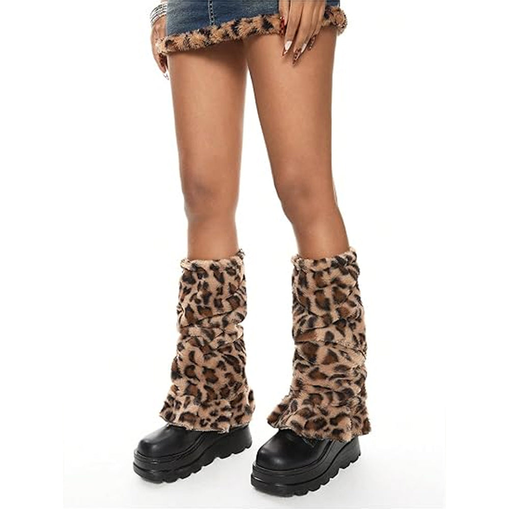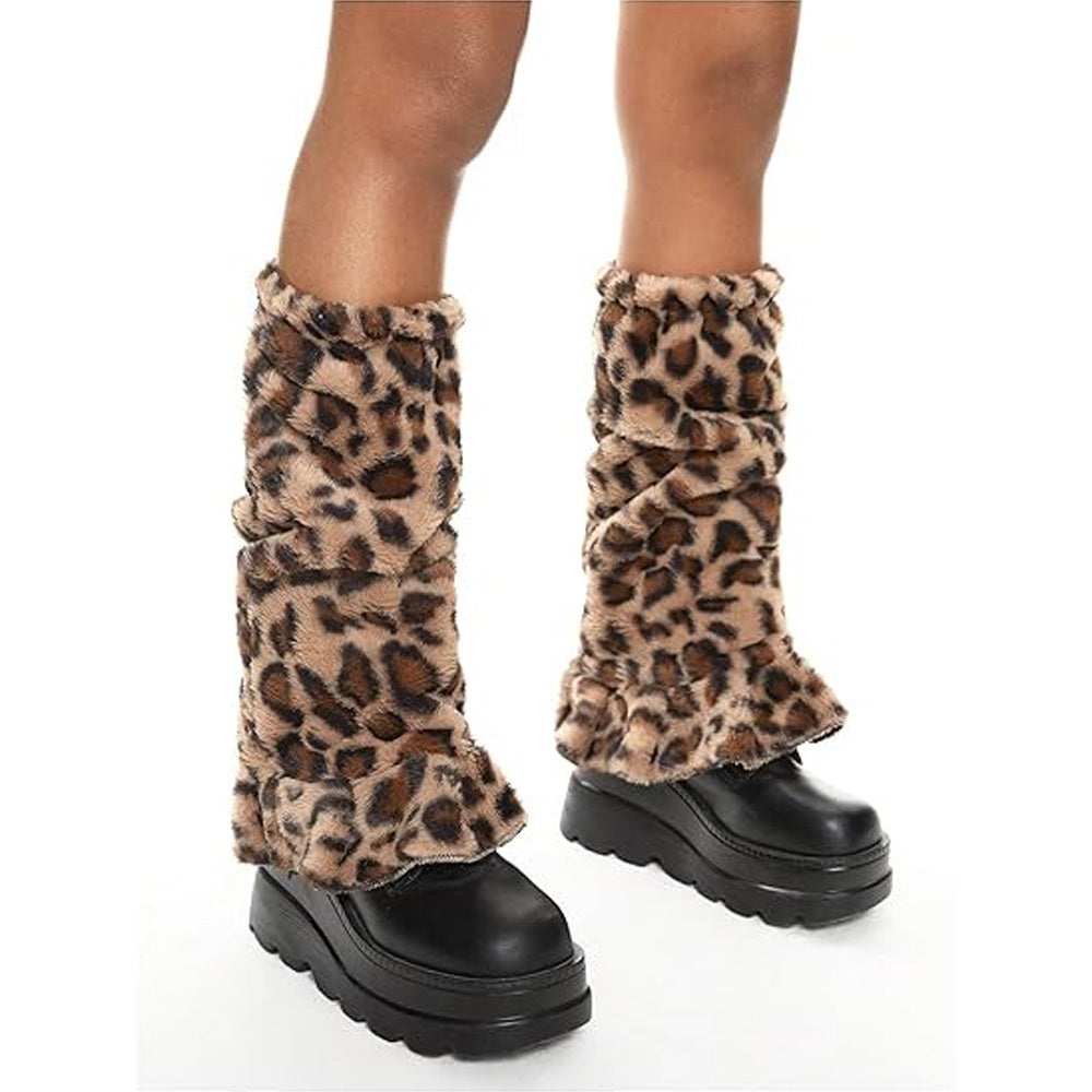 ✨ Points clés : Peluche ultra-douce • Imprimé léopard tendance • Style rétro années 80 • Manchons bottes polaires • Confortables et chaudes • 70% Polyester