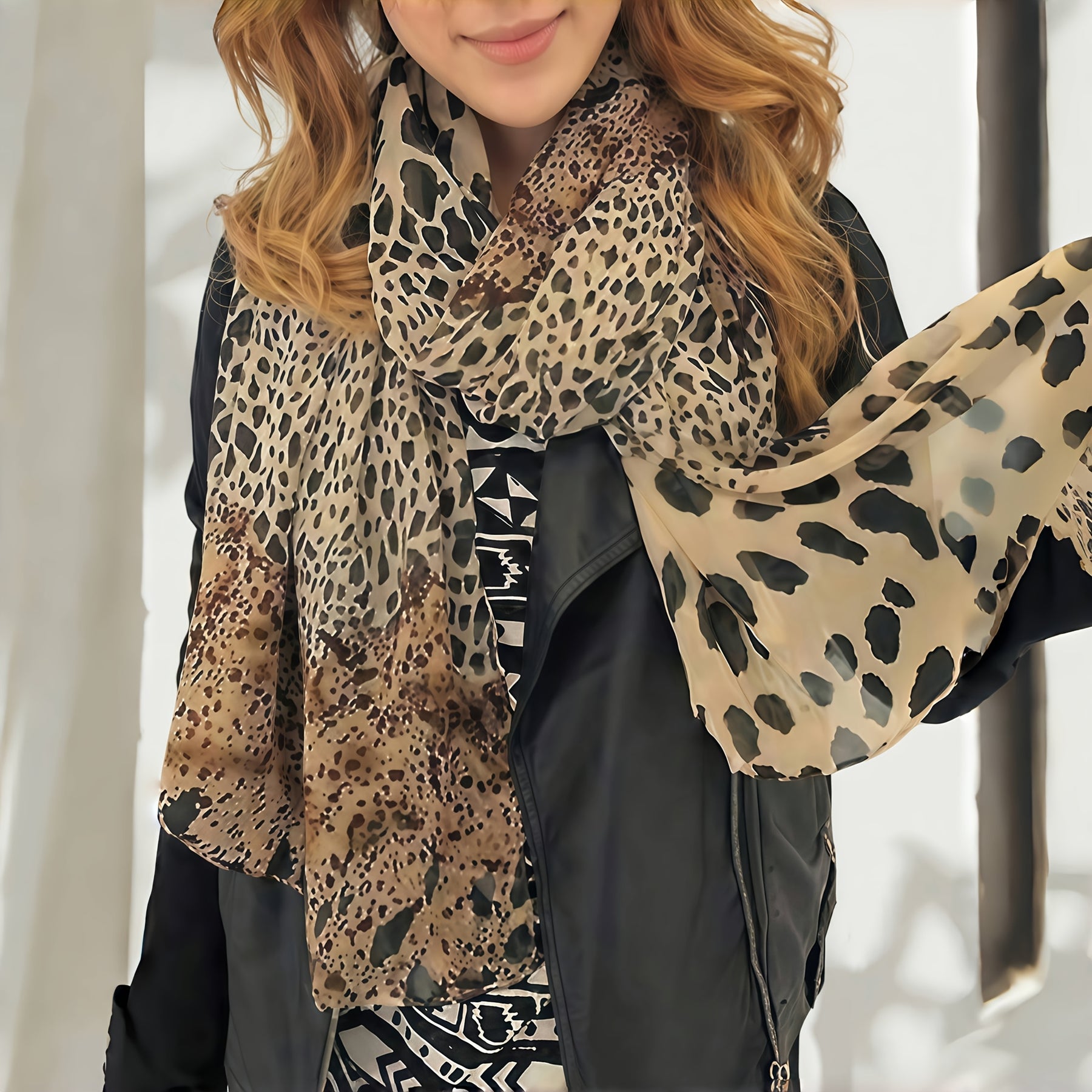 ✨ Points clés : Mousseline légère et élégante • Imprimé léopard beige/marron/noir/blanc • Long et polyvalent • Tissu doux lavable à la main • Style bohème • Parfait quotidien, soirées, mariages • Dimensions : 155*45 cm