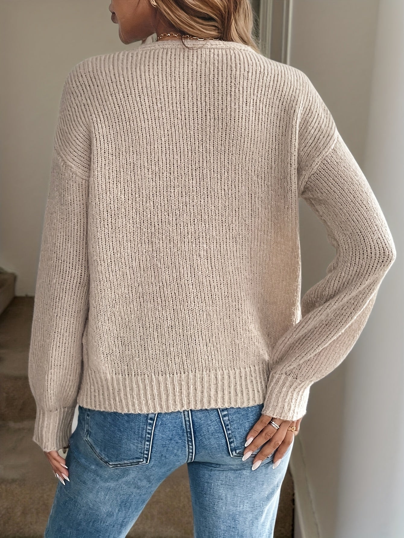 ✨ Points clés : Style élégant • Col V • Détail nœud papillon • 100% Polyester • Manches longues • Couleur unie • Micro-élasticité • Automne/Hiver