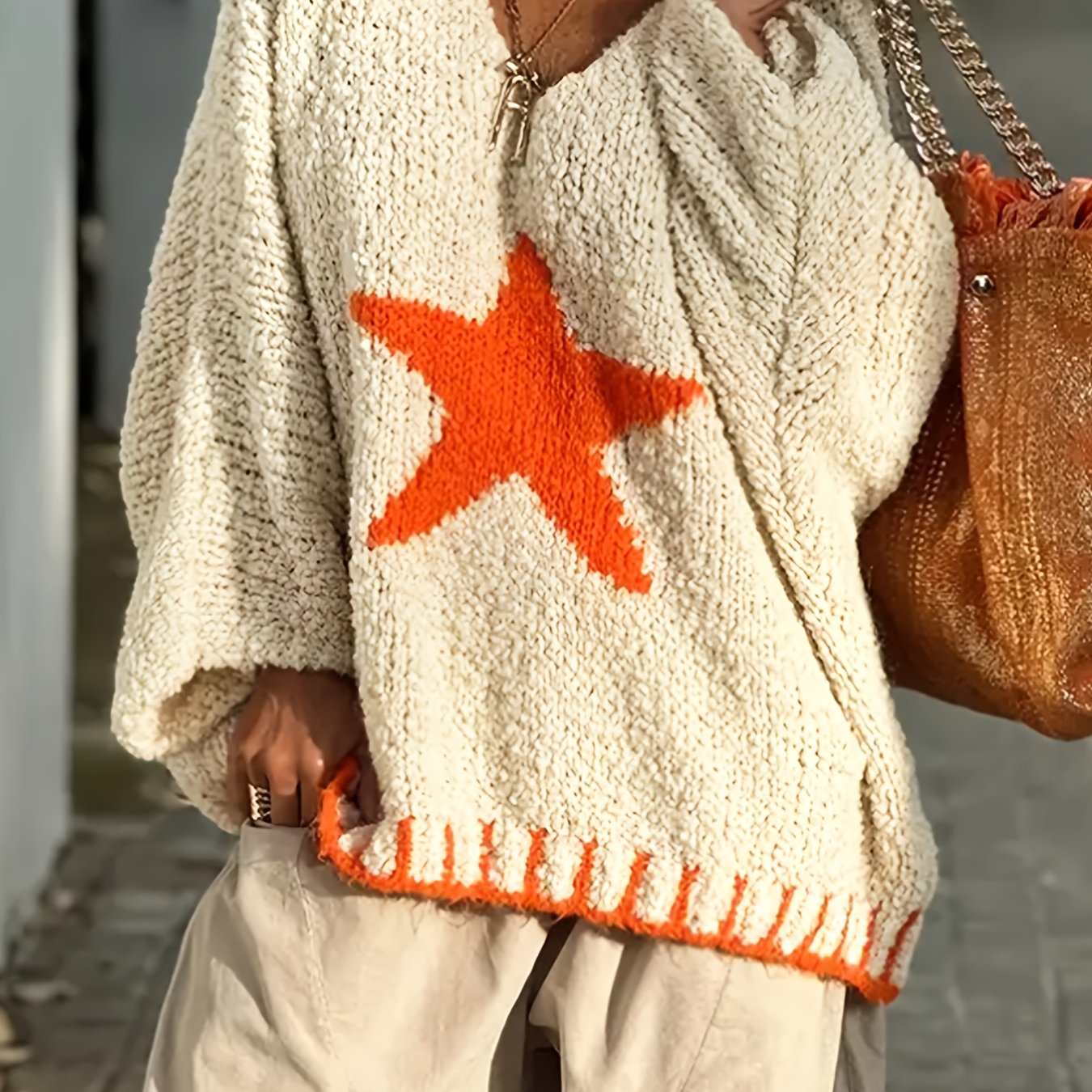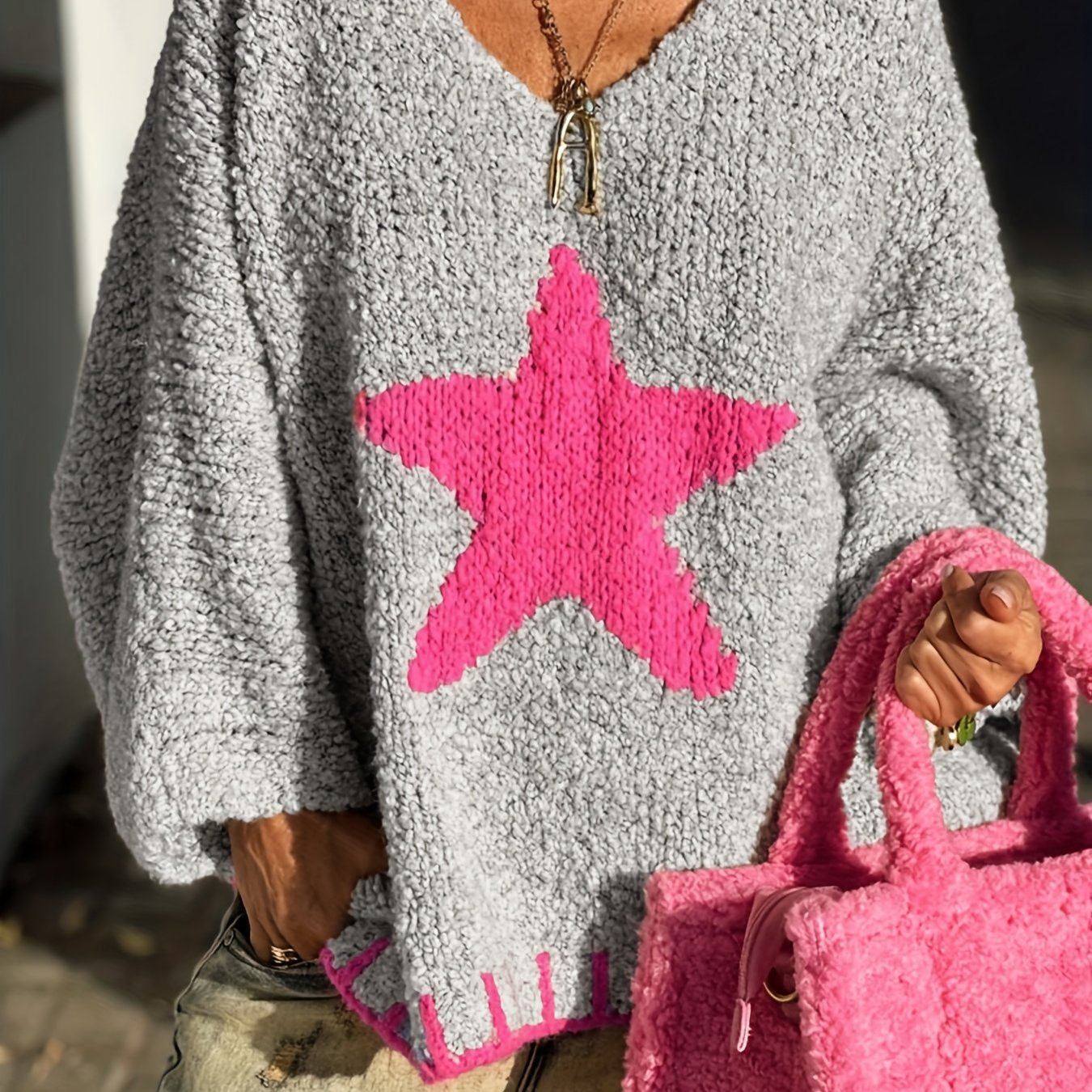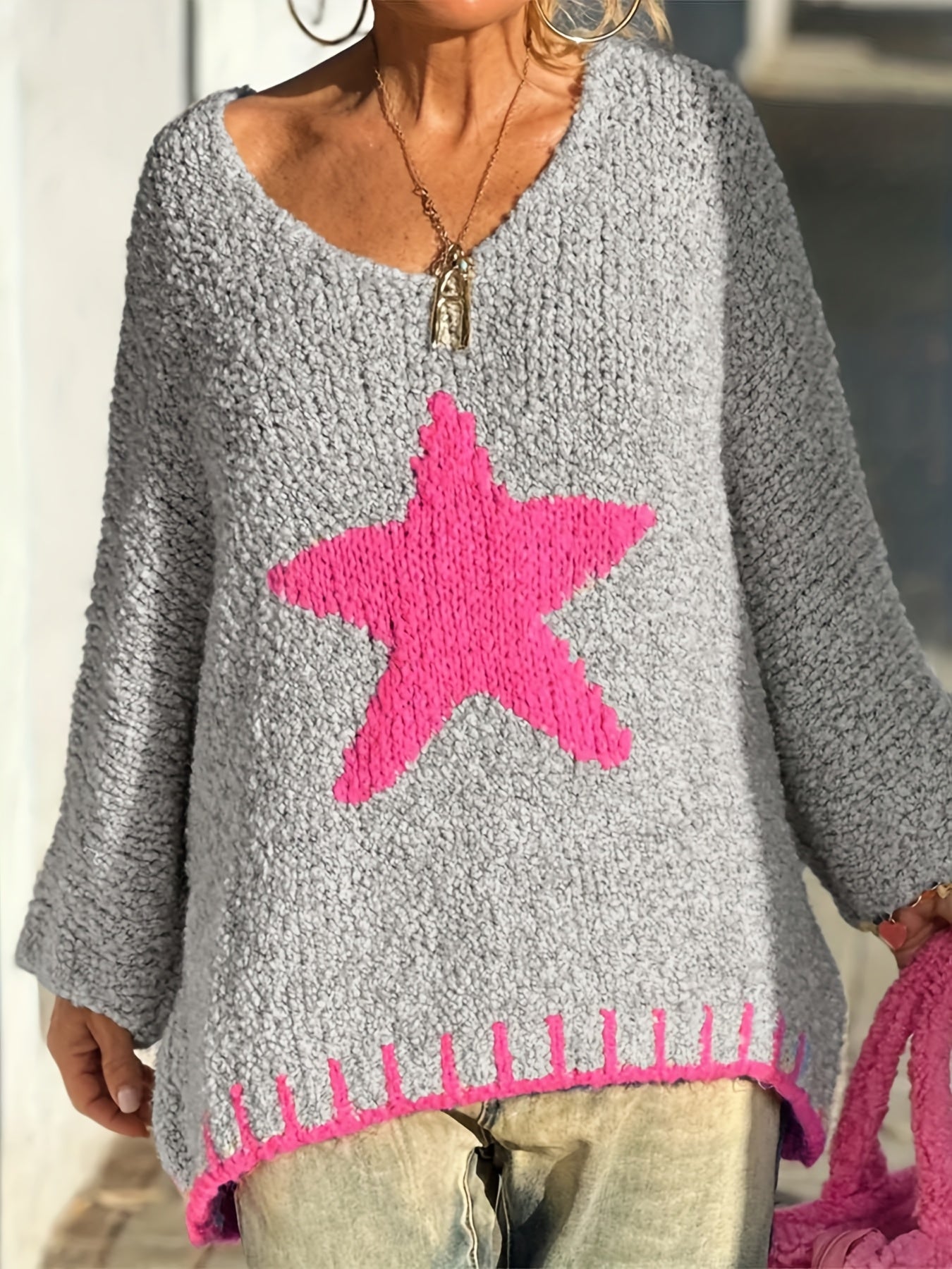 ✨ Points clés : Motif étoile géométrique • Col V élégant • Détails côtelés raffinés • Haute élasticité • Coupe ample confortable