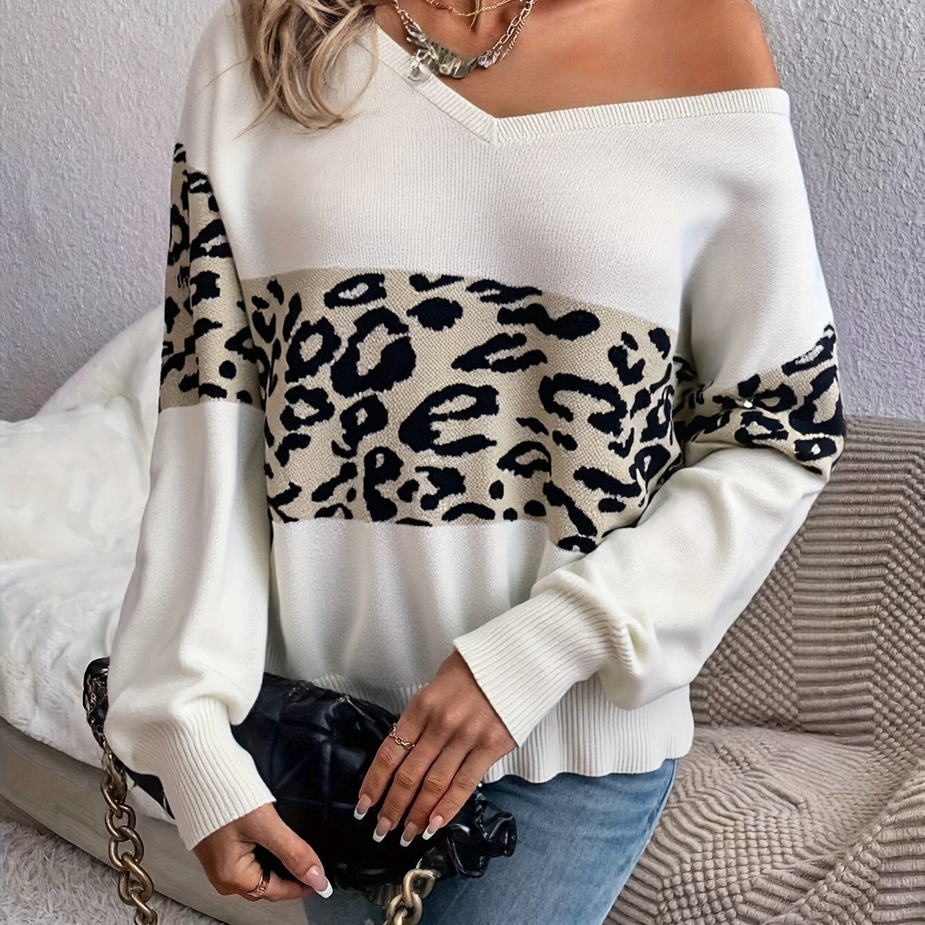 ✨ Points clés : Col en V élégant • Imprimé léopard • Coupe ample confortable • Manches longues • Style décontracté chic • Parfait automne/hiver