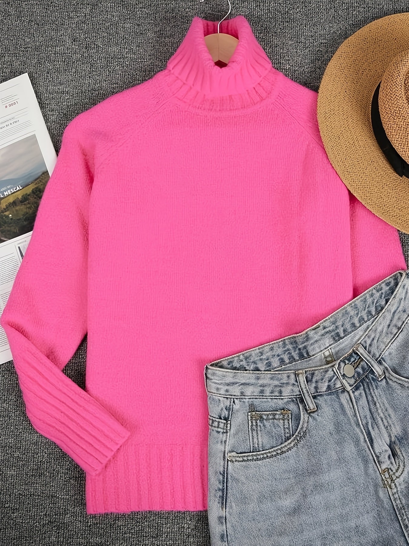 ✨ Points clés : Col roulé élégant • Tricot côtelé sculptant • Manches longues • Matière douce et confortable • Haute élasticité • Couleur unie intemporelle • Non transparent