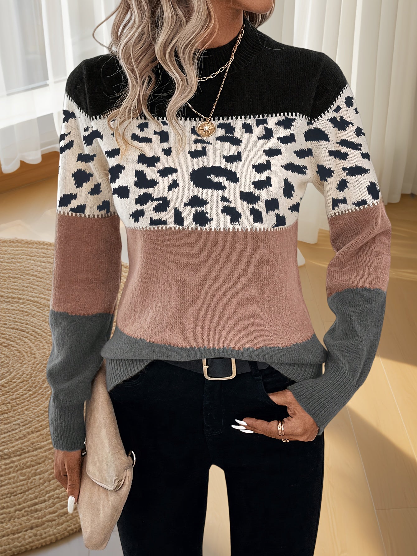 Pull Léopard Blocs de Couleur❤️‍🔥