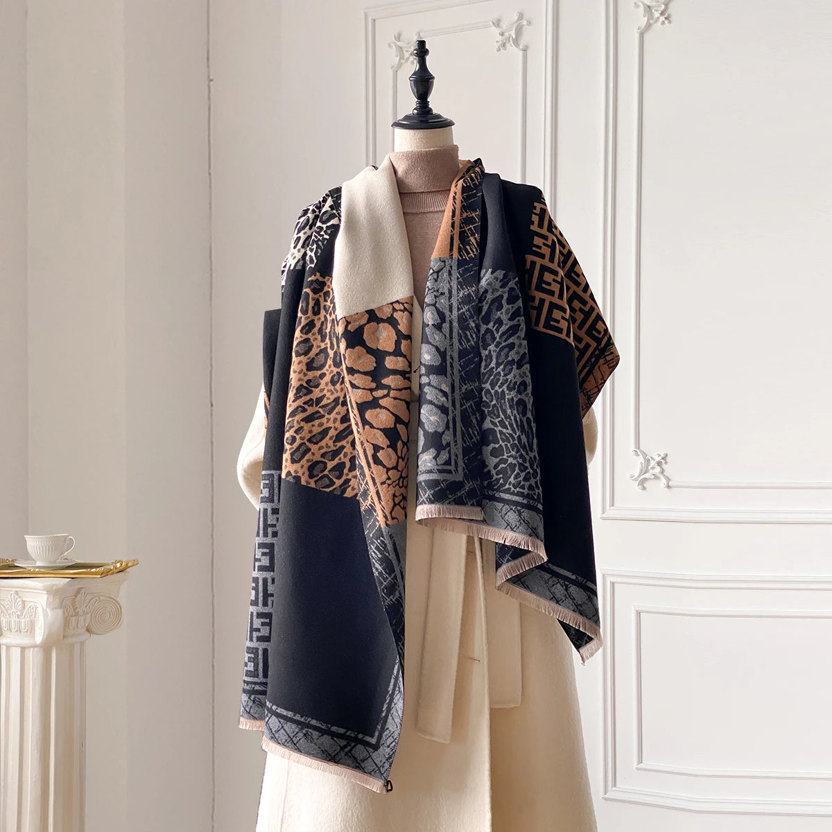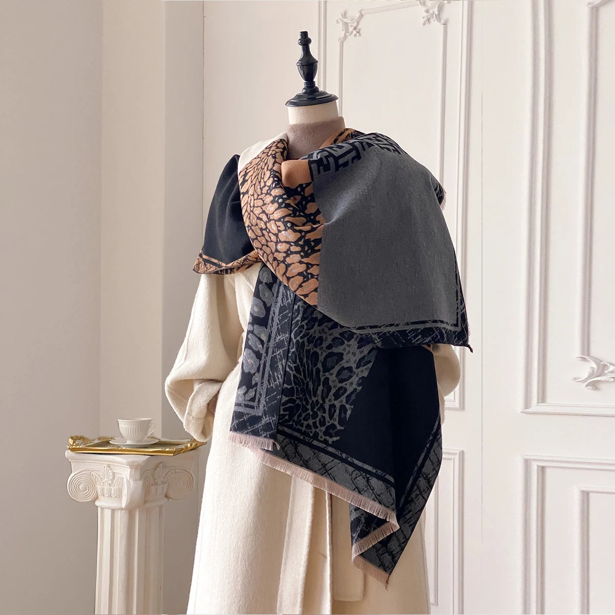 La mode Chic élégant et tendance à votre cou. Cette écharpe léopard jacquard épaisse en imitation cachemire allie simplicité et élégance pour vos tenues automne-hiver.