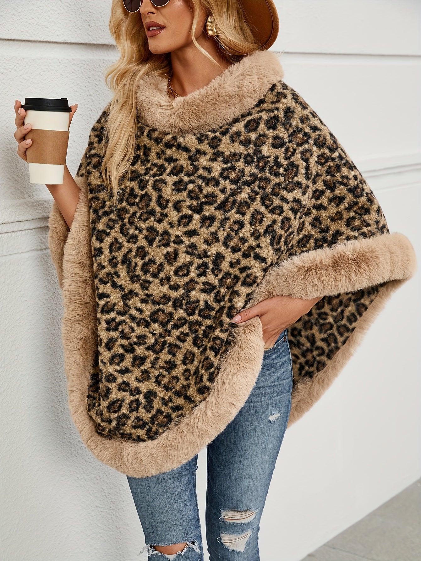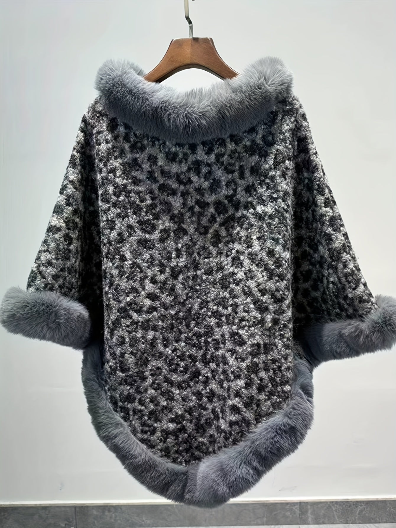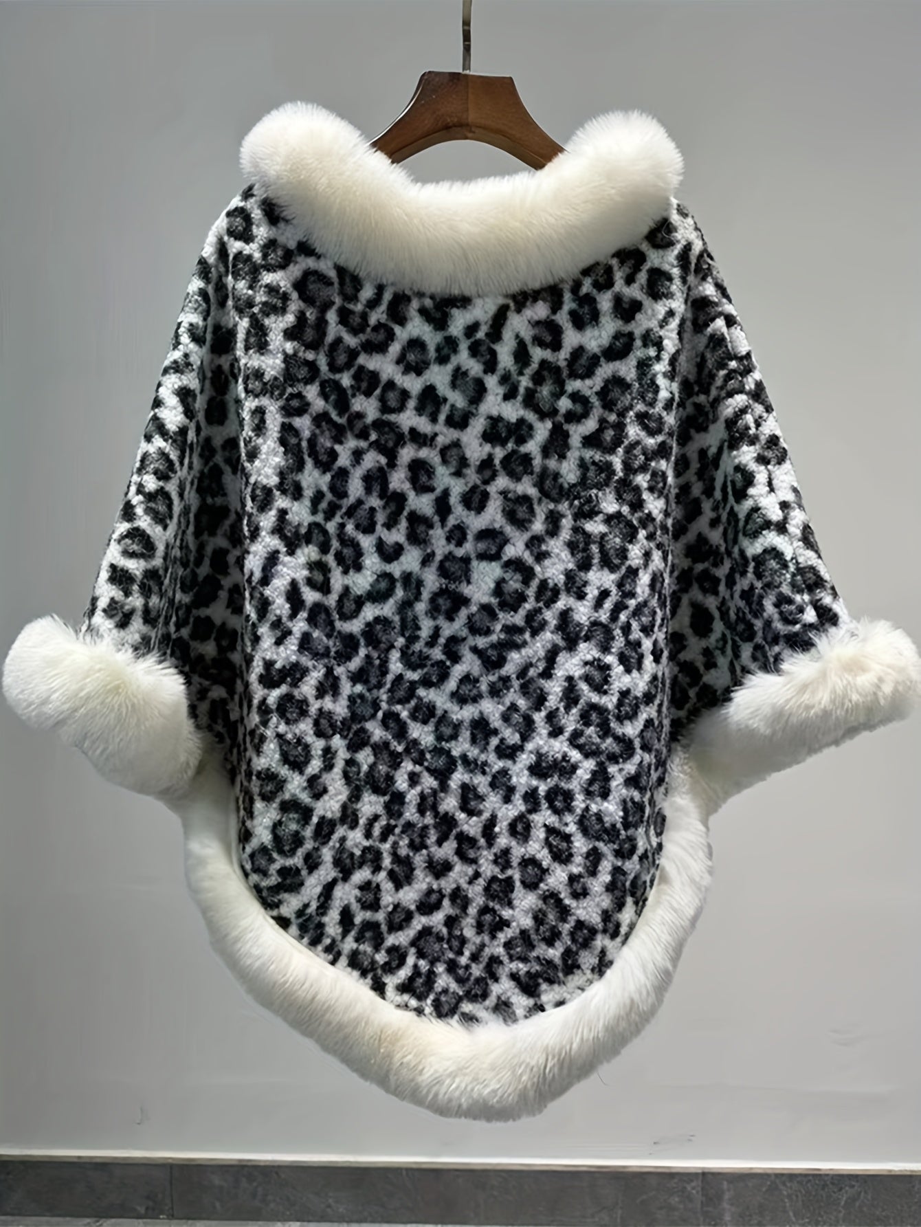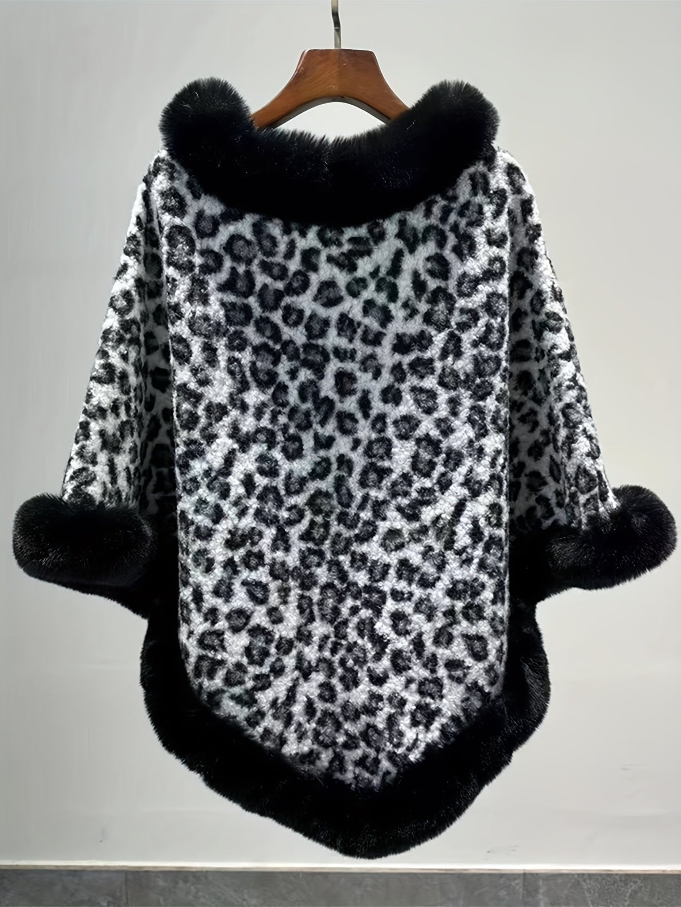 ✨ Points clés : Fausse fourrure luxueuse • Imprimé léopard patchwork • Design cape élégant • Chaud et confortable • Style européen et américain • Parfait automne-hiver