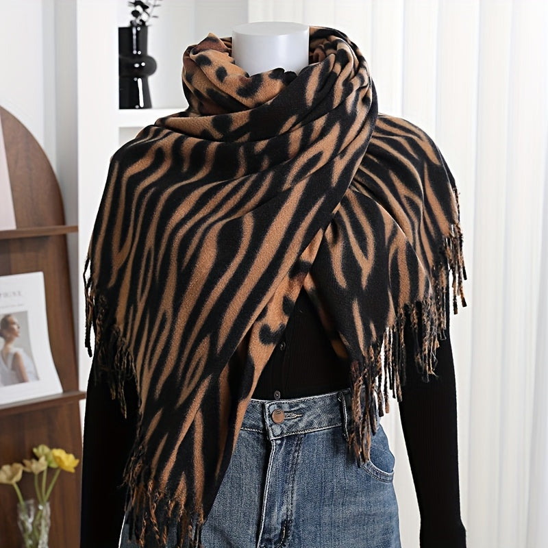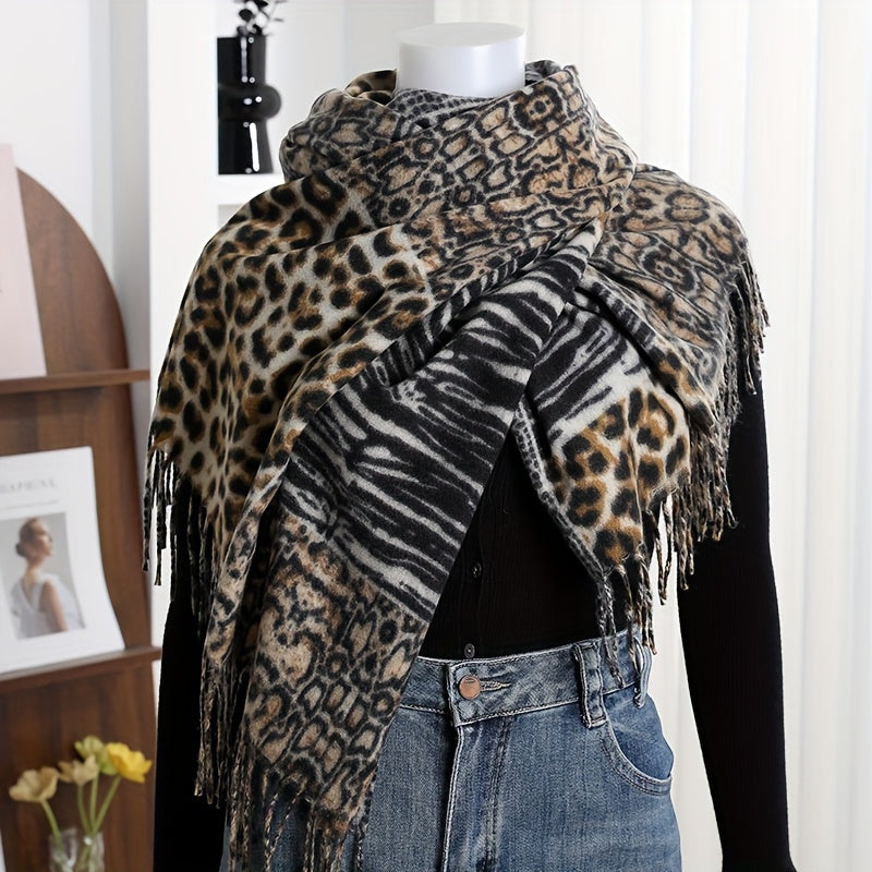 ✨ Points clés : Motif léopard élégant • Tissage fin • Franges fines soignées • 100% Polyester doux et résistant • Style décontracté chic  • Dimensions : 200* 70cm
