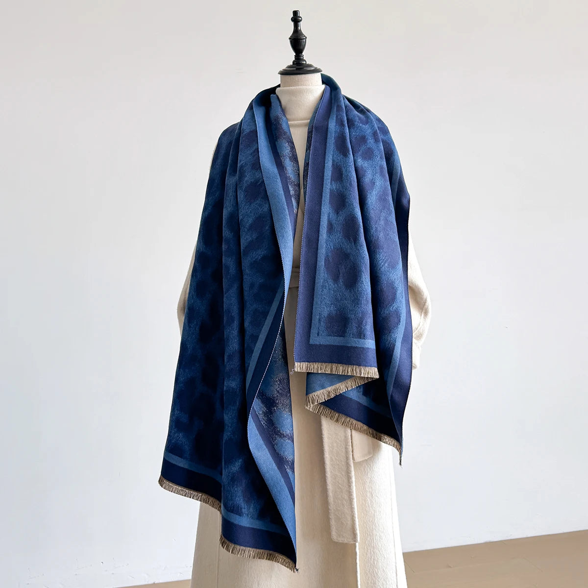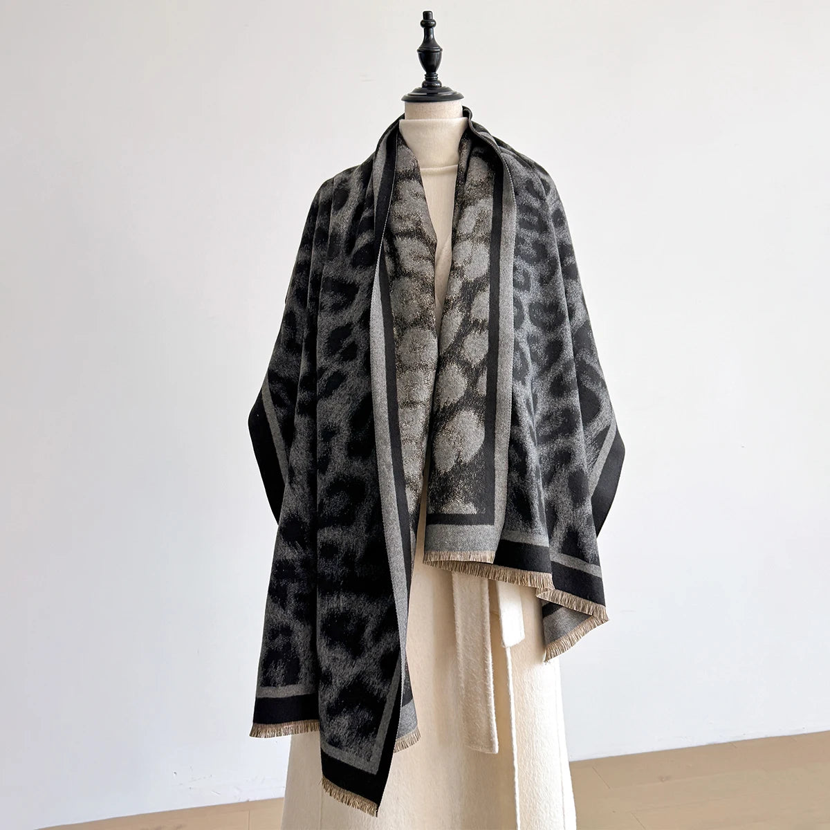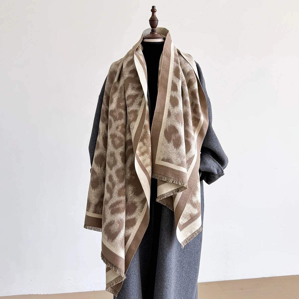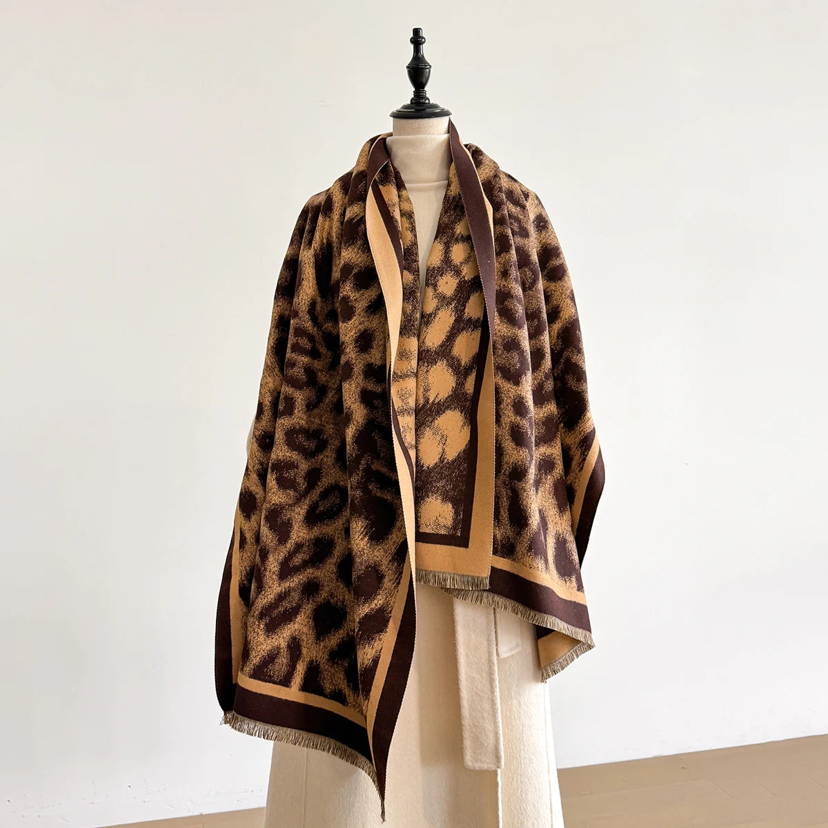 Le luxe du cachemire, l'élégance du léopard. Cette écharpe épaisse et chaude en fausse cachemire vous enveloppe de douceur et de sophistication pour affronter l'hiver avec style.