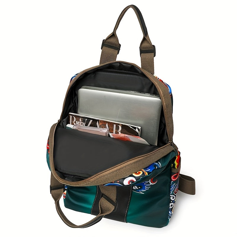 L'élégance léopard pour vos voyages. Ce sac à dos en nylon avec imprimé léopard doré, beige et noir allie style et praticité avec ses bretelles rembourrées réglables et ses accessoires dorés raffinés.