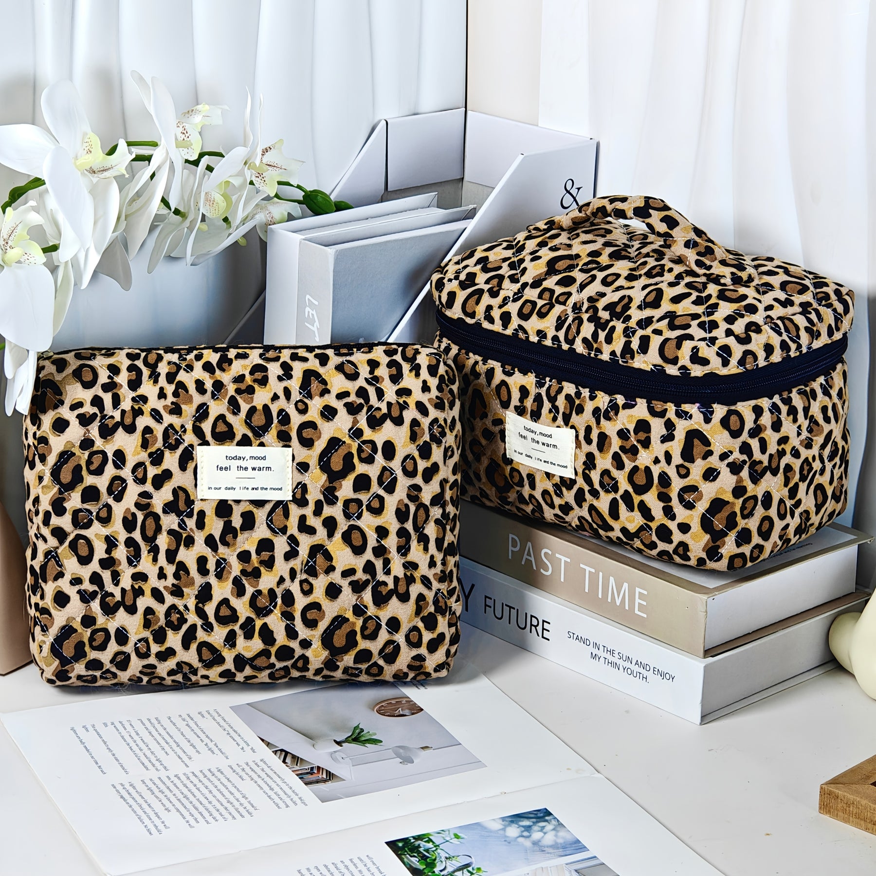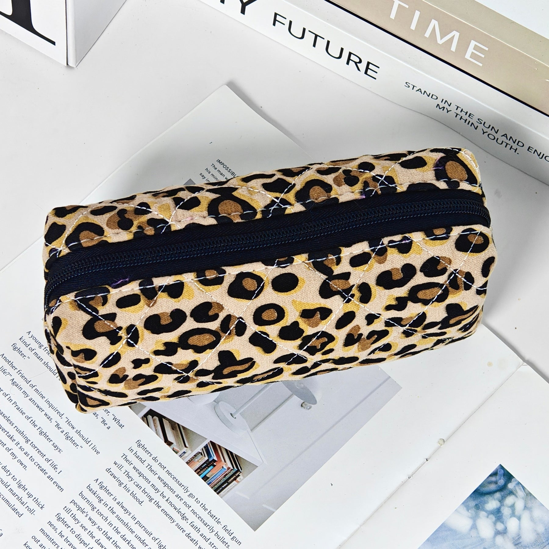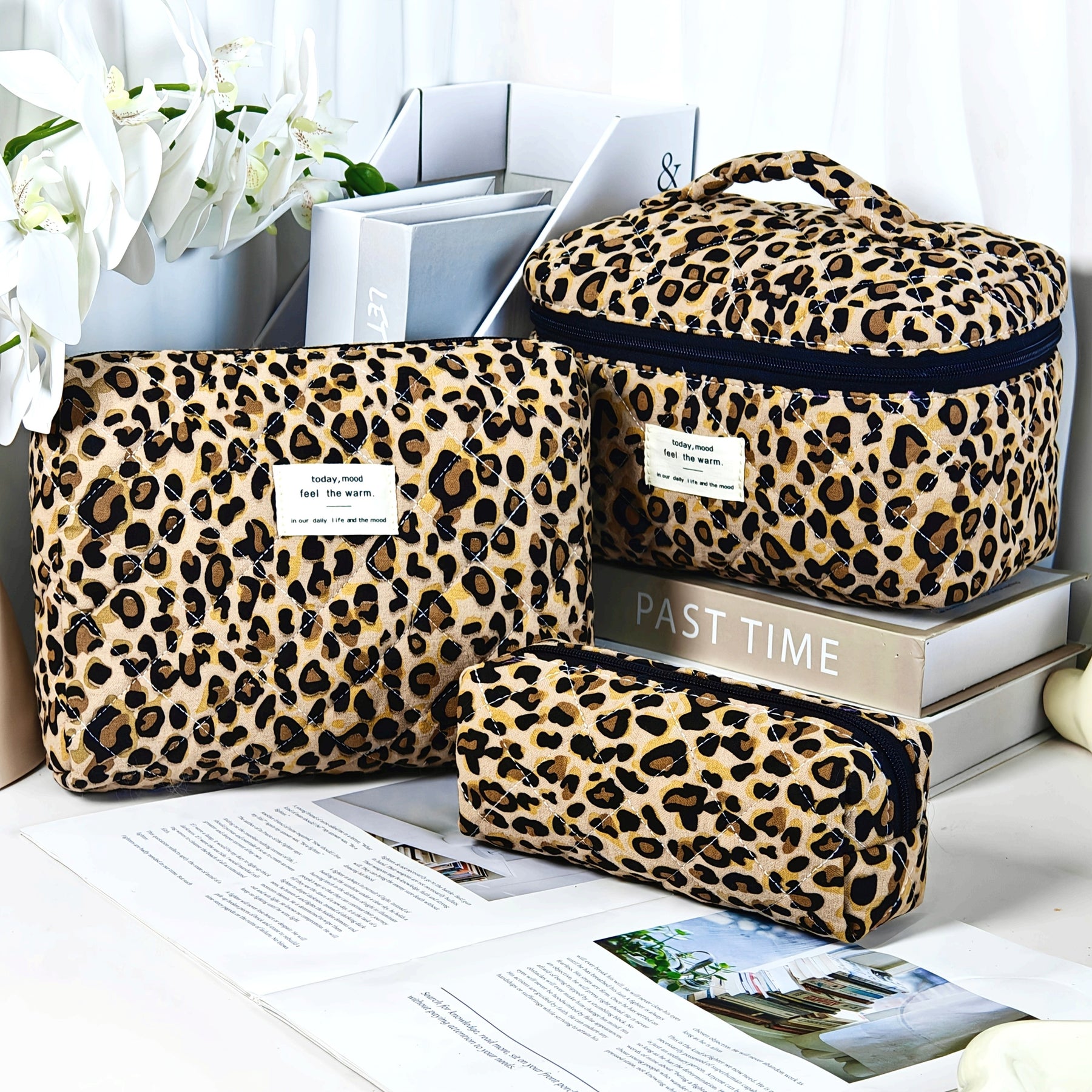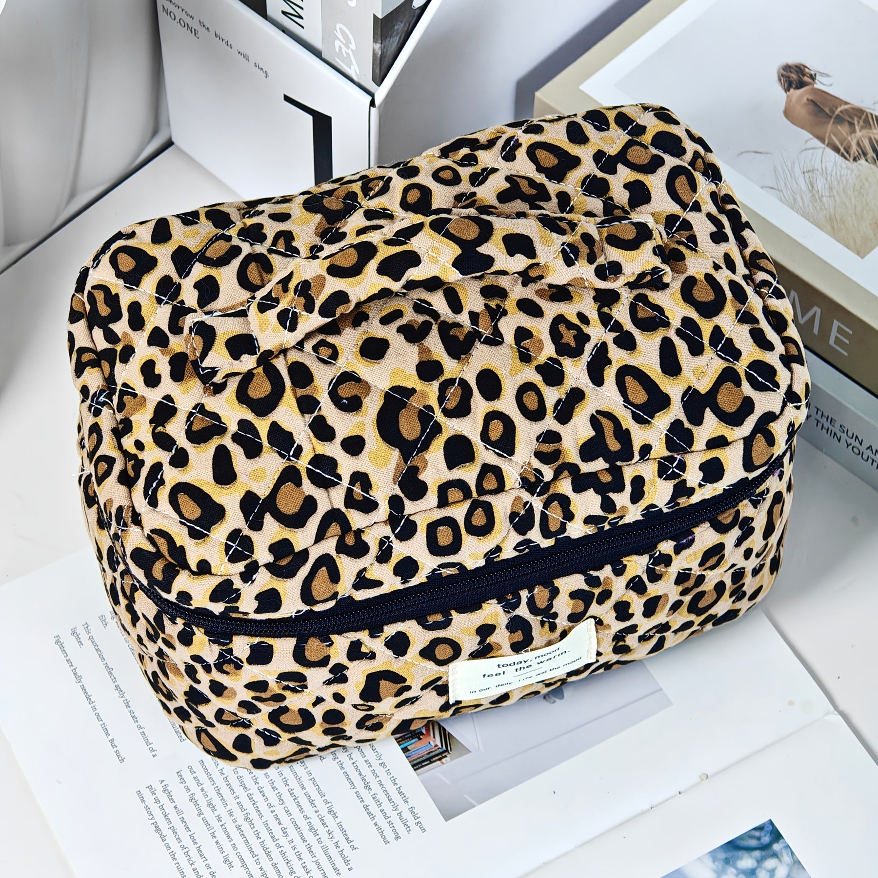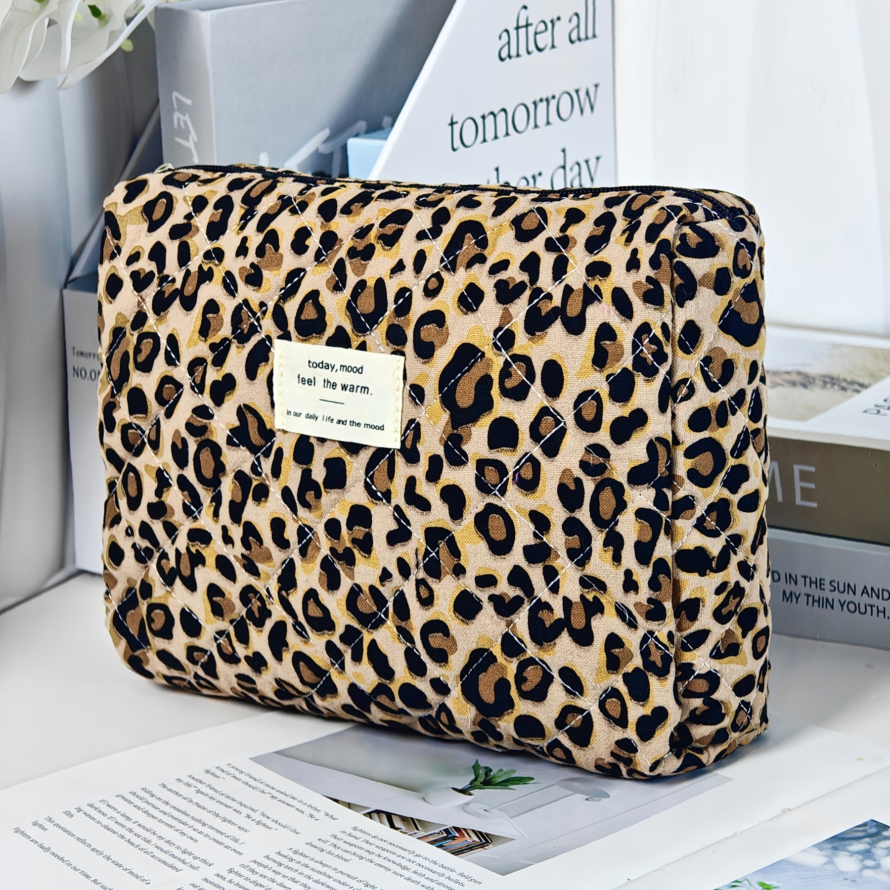 L'organisateur parfait pour vos essentiels beauté. Cette trousse de maquillage matelassée à imprimé léopard allie élégance et praticité pour organiser vos cosmétiques avec style.